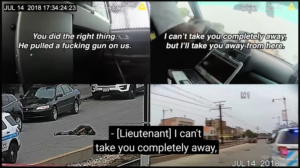 Morrison’s short documentary is a compilation of body cam footage, audio, and public security camera footage. Some Google Earth animations are even present for precision.